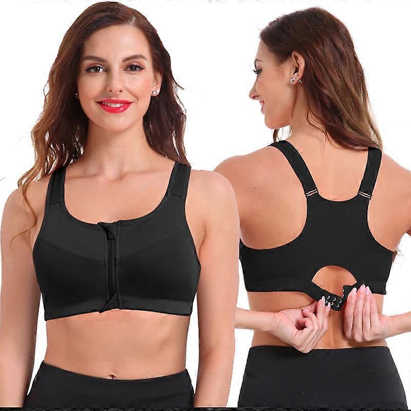 Women Padded Sports Bra Adjustable High Impact Support Zip Front Close Plus Size