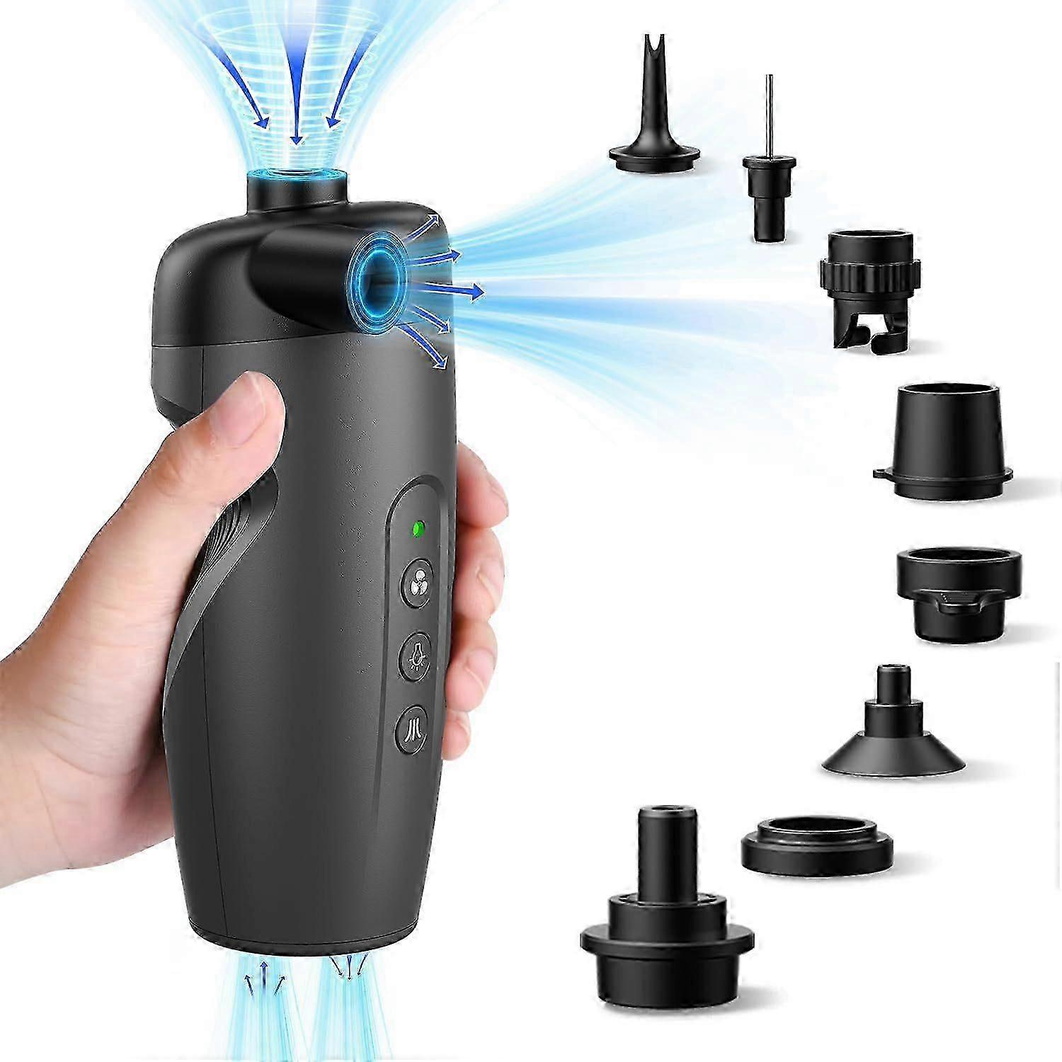 Wireless & PortableOur paddle board pump is quite lightweight and portable, with a built-in rechargeable battery, it can provide about 45 minutes of use on a single charge. Wireless, easy to carry in your backpack or pocket, you can take it anywhere even if there is no power outlet nearby. Powerful & Fast InflationDesigned with a maximum inflation pressure of 20PSI, this electric air pump can inflate your paddle board very quickly and easily. It is a great helper for sea surfing, outdoor camping, hiking, beach or indoor storage. 2 IN 1 MultifunctionOur air mattress pump is also an inflation or deflation pump. It has high pressure and low pressure, with a maximum inflation pressure of 120Kpa and 4500pa. The maximum air volume of the high pressure pump is 8L/mins, ideal for volleyball, basketball, football, rugby, while the low pressure pump is 350L/mins, for floats swimming pool, swimming rings, swimming pool. Emergency lightThe portable air pump is also equipped with an emergency light with a power of 0.5 W and brightness of 50 to 80 lumens, making it easy to inflate your SUP even in low light or dark conditions. 8 Nozzles & Great capacity of useExquisite craftsmanship, upgraded motor and solid ABS plastic shell make this inflatable surfboard pump sturdy, well-sealed and durable. Equipped with 7 different nozzles and a high-pressure adapter, it can adapt to most inflatable products, such as SUP paddle, inflatable toys, pool floats, inflatable sofas, pool rafts, vacuum storage bags, basketballs, footballs, etc.