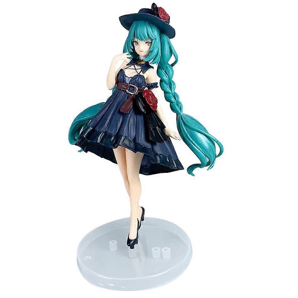 20cm Anime Beautiful Girl Hatsune Miku Cartoon Black Dress Standing Posture Hatsune Miku Handmade PVC Model Table Decorations