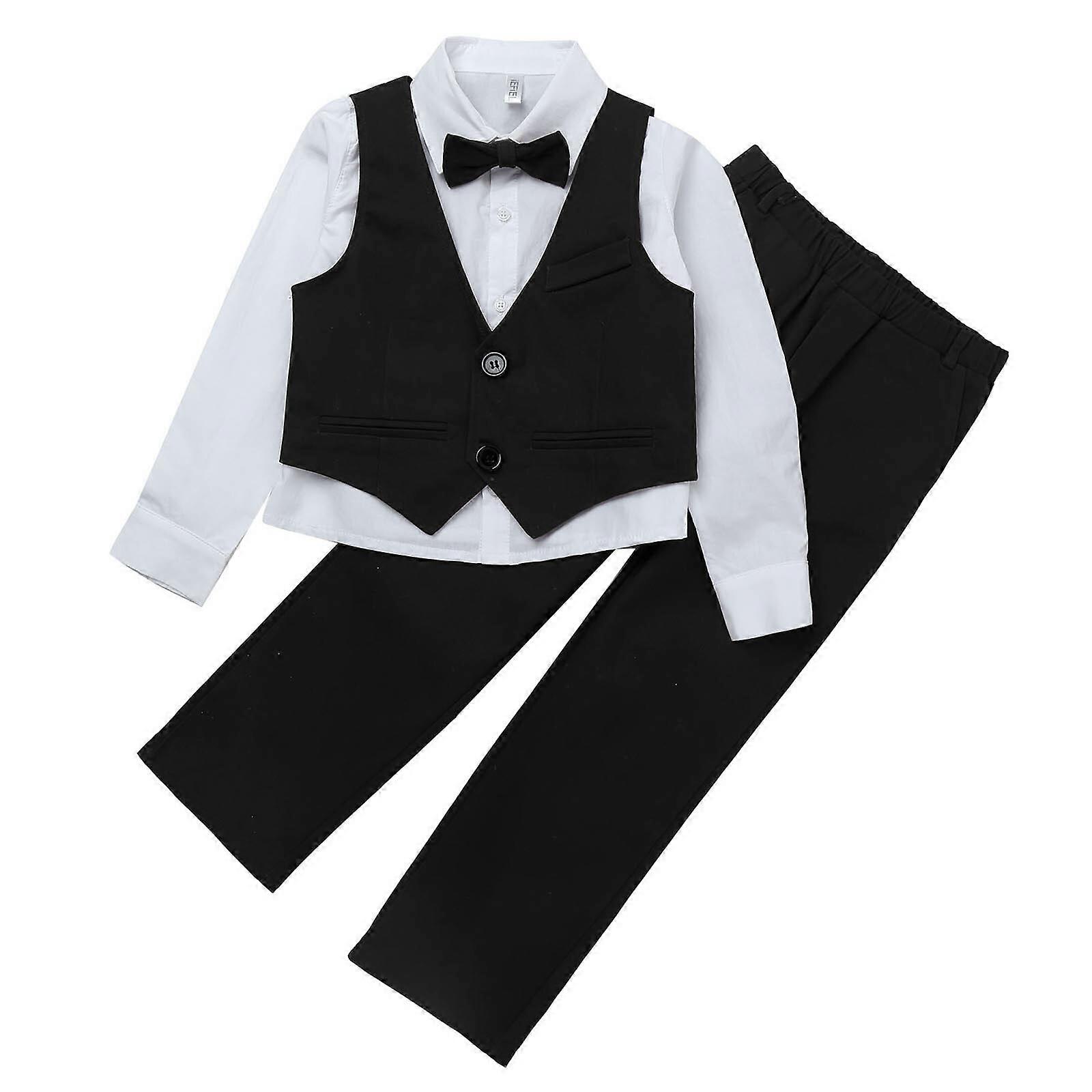 Kids Boys Long Sleeve Shirt with Suit Vest Pants Bow Tie Set Wedding Formal 4PCS