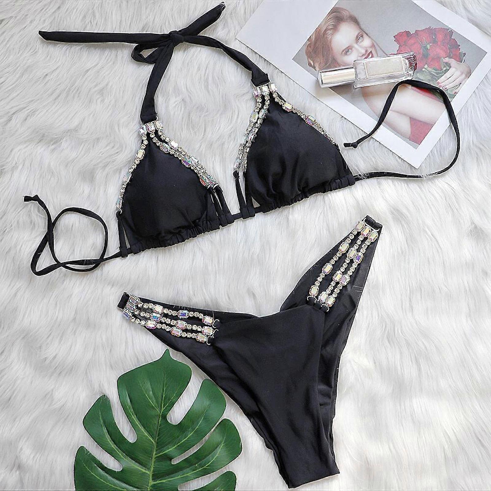 Sexy Ladies Beach Bikini Solid Color Split Soft Knotted Bikini Swimsuit Female Low Waist Lacing Thong Suit Swimsuits Rose XL
