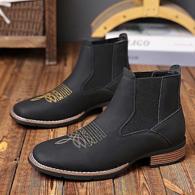 Men's Slip-On Chelsea Boots with Golden Embroidery - British Retro Style Ankle Boots, Elastic Sides & Rubber Sole for Casual, Party, Autumn