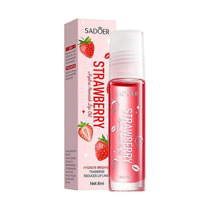 Strawberry Moisturizing Hydrating Lip Gloss - 1pc Clear Lip Oil Primer Roll-On, Long-Lasting Glossy Finish, All Skin Types