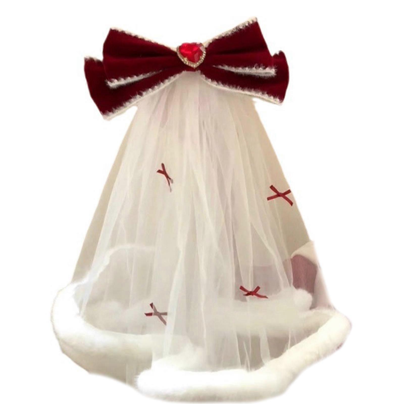 Plush Trim Bowknot Tulle Marriage Bridal Veil with Fix Hair Clip for Marriage Christmas Celebration Party Accessories Multicolor