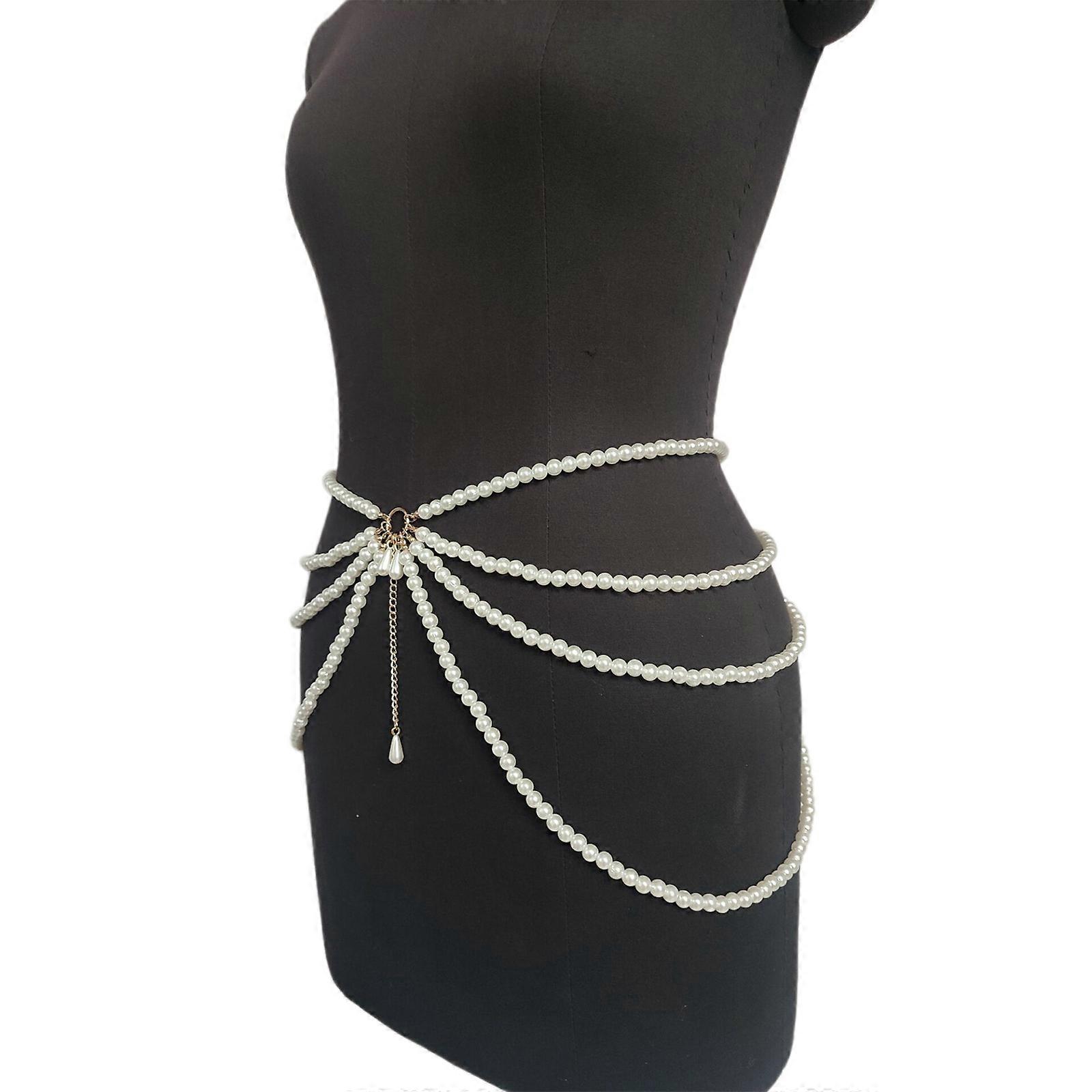 Fashionable Multilayer Waist Chain Versatile Layered Body Chains Pearl Belly Chains Character Playing Body Accessory Multicolor