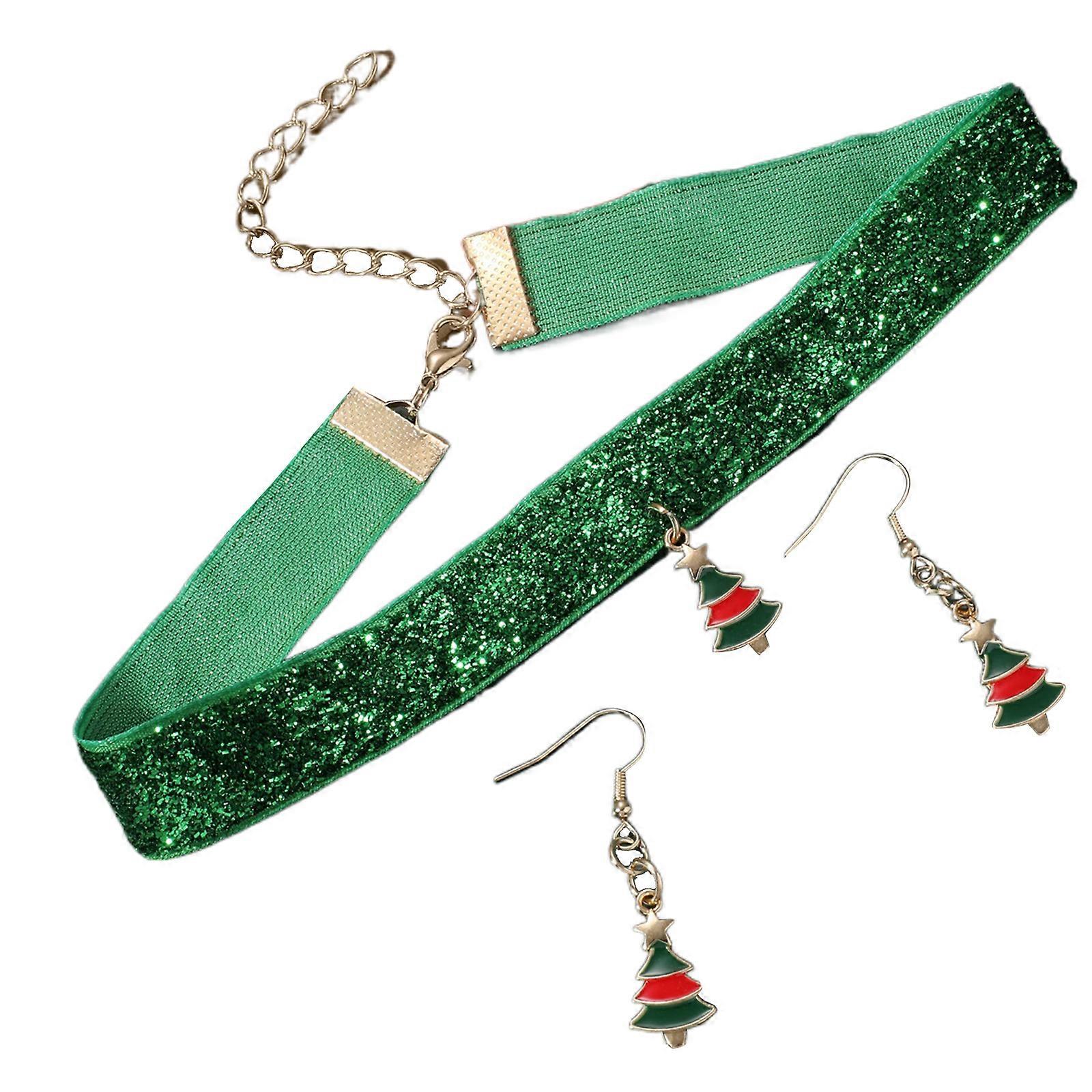 Trendy Statement Christmas Tree Necklace for Women Drop Earrings Choker Neck Chain Jewelry Gift New Year Party Accessory Multicolor