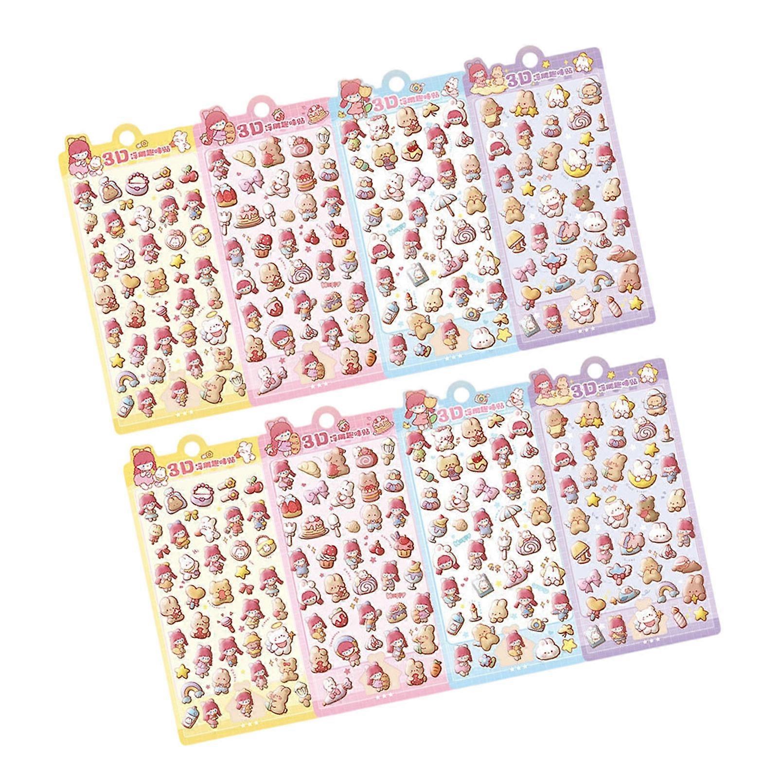 8Sheets Reusable Cartoon Animal Stickers Decorative Stickers Decals For Walls Furniture Book And Craft Project Use Multicolor