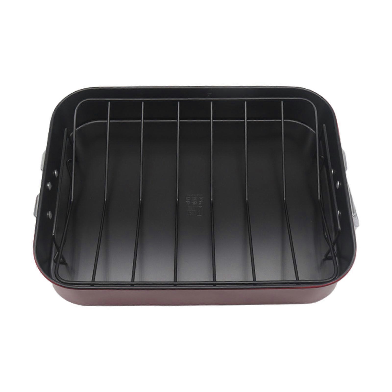 Stainless Steel Roasting Pan Long Lasting Chicken Grilling Plate with Rack Easy to Clean for Roasting Meat and Vegetable Multicolor