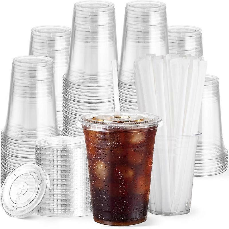100 Pack 16 oz Clear Plastic Cups with Lids and Straws, Disposable Coffee Cups with Lids, To Go Iced Coffee Cups with Lids, Disposable Cups