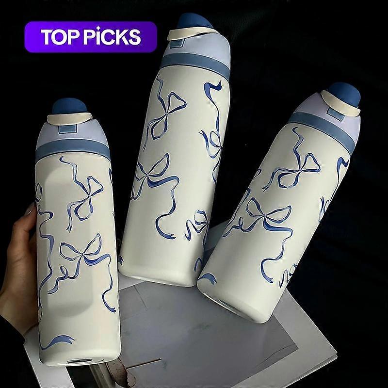 Butterfly Pattern Vacuum Flask, 1 Count 24oz-32oz-40oz Large Capacity Insulated Water Bottle with Straw, Drinking Cup for Home Office School