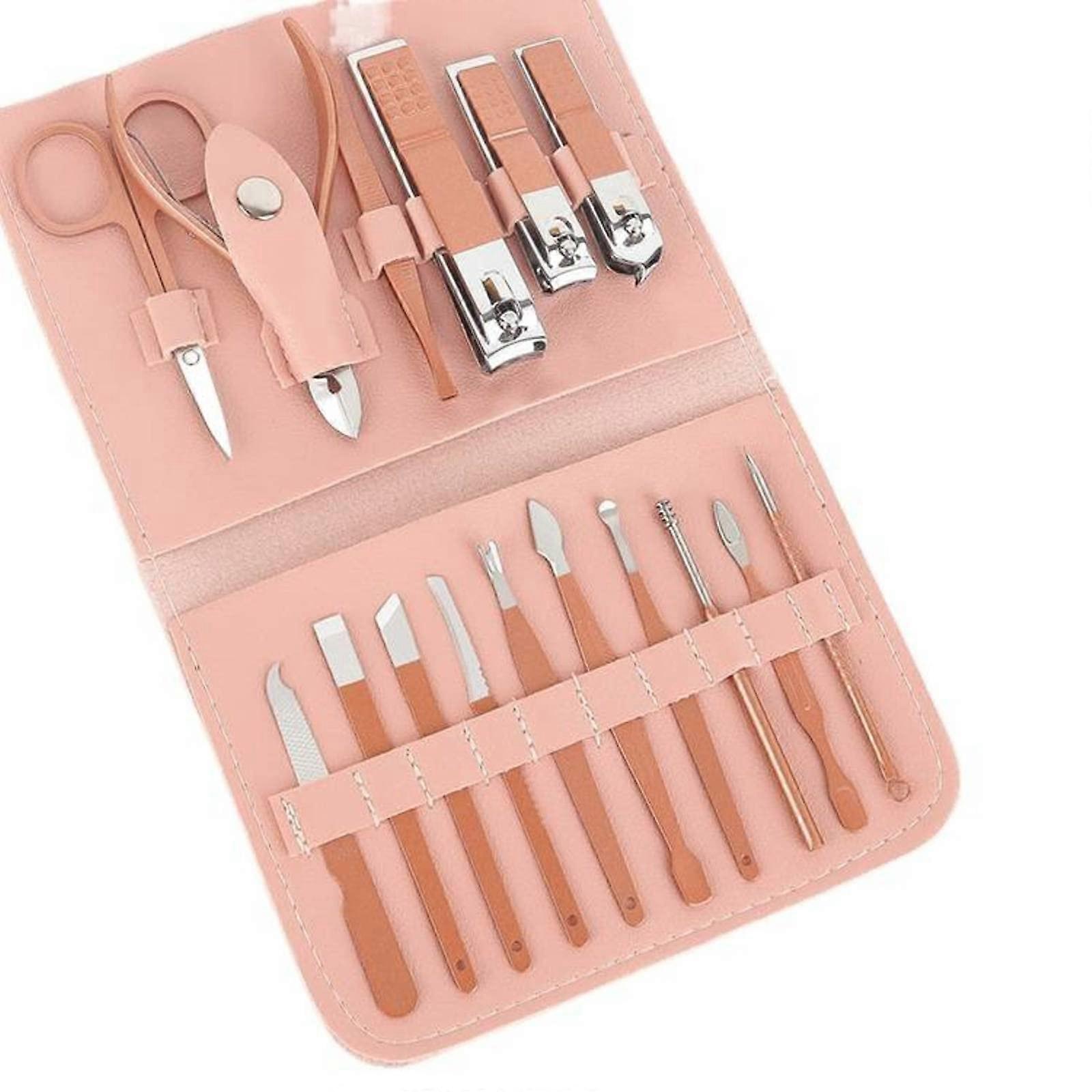 16 Piece Manicure Set with Leather Case, Professional Nail Clippers Kit, RustResistant Blades