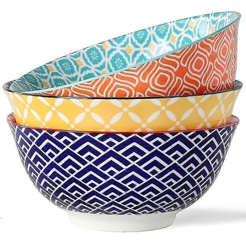 Large Salad Bowls, 48 Oz Serving Bowls for Soup, Pho, Pasta Rarmen, Stackable Ceramic Bowls for Kitchen, Set of 3, Microwave & Dishwasher Sa