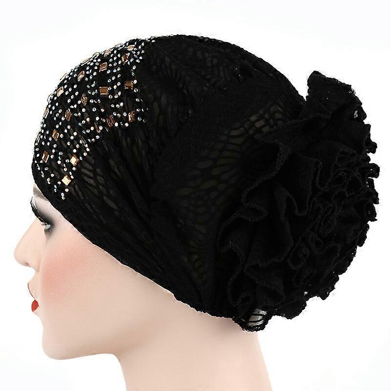 Women Polyester Head Wrap Scarf Hat Soft Hijab Cap with Large Flower Beautiful