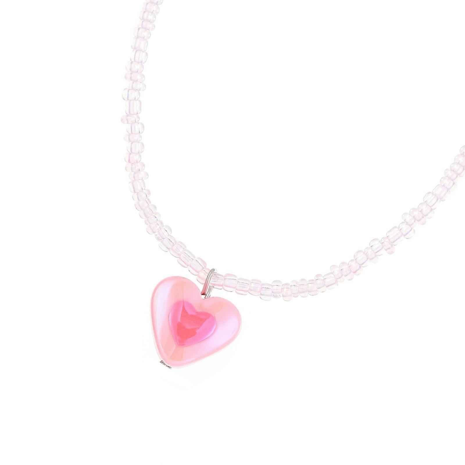 Heart Pendant Necklace Dopamine Jewelry Beads Necklace Acrylic Material Fashion Accessory Suitable for Fashion Lover Multicolor