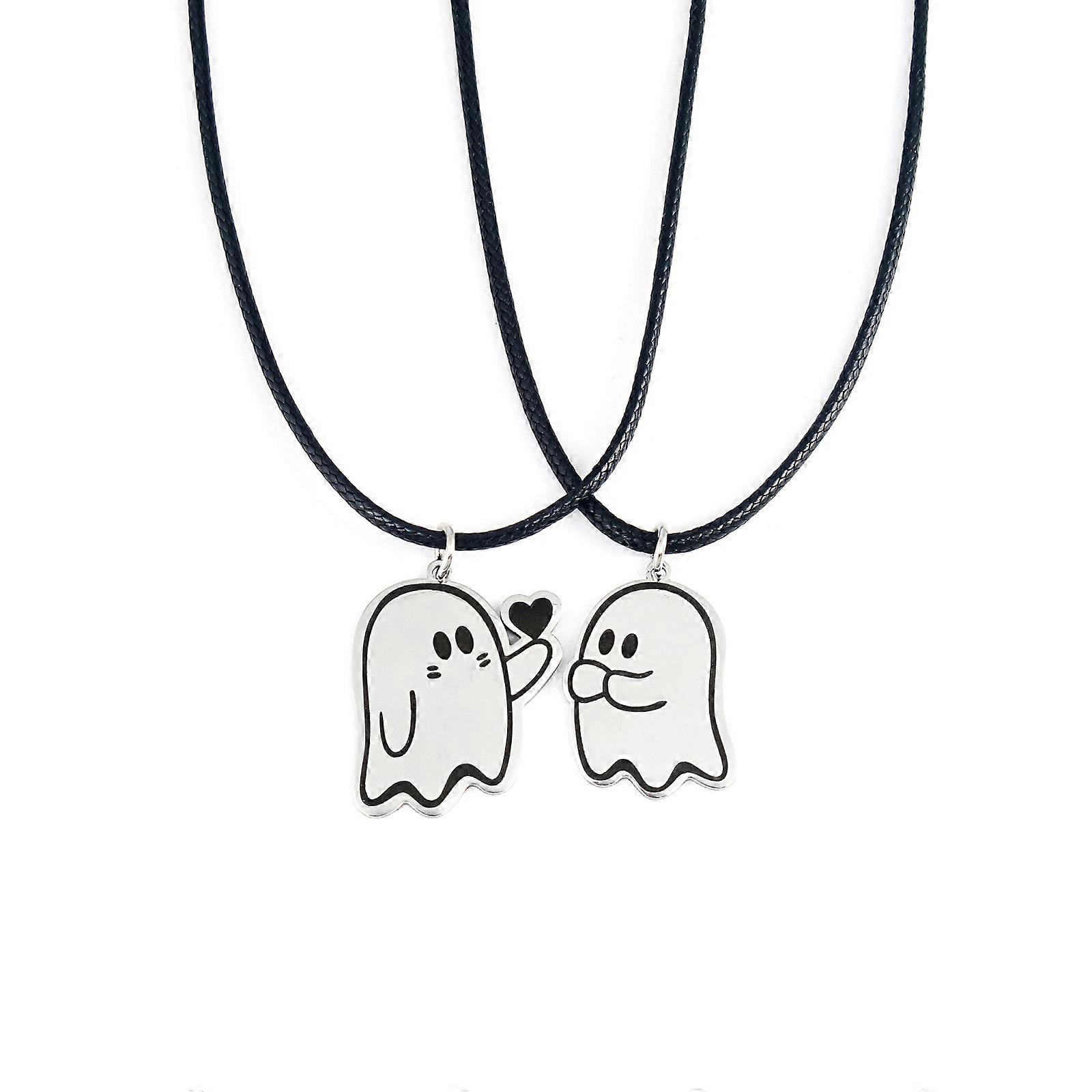Halloween Necklace Cute Cartoon Ghostes Pendant Couple Necklaces for Women Men Stainless Steel Chain Choker Ornament Multicolor