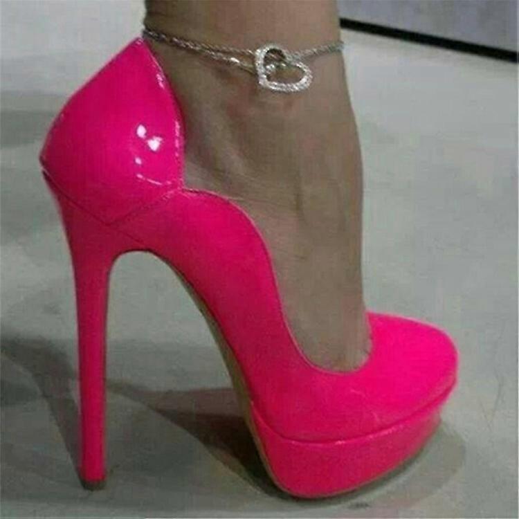 Women Platform Pumps Round Toe Slim High Heel Fuchssia Shoes Woman Plus Size 20