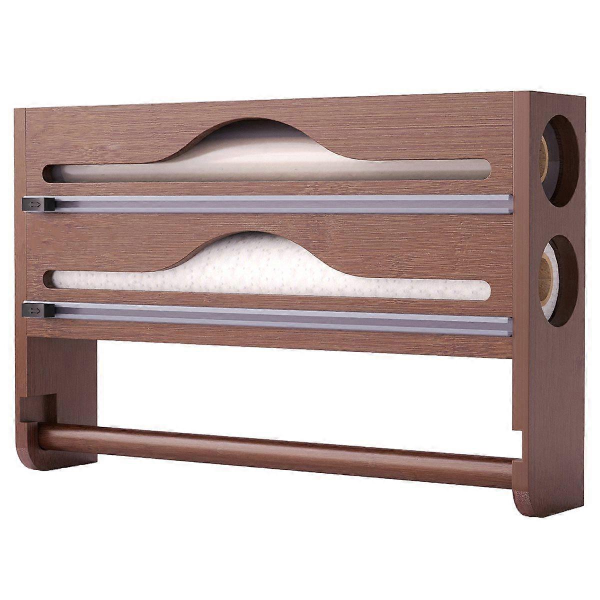 Foil and Plastic Wrap Organizer, Bamboo Aluminum Foil Dispenser with Paper Towel Holder, Kitchen Organization C