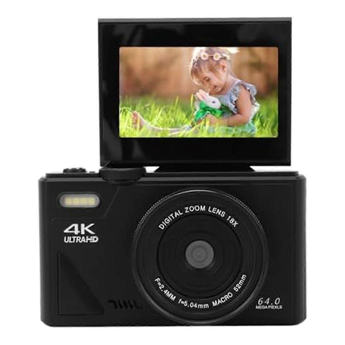 4K Digital Camera, 3 Inch Flip Screen 64MP UHD 18X Zoom Autofocus Retro Compact Camera, Portable Camera Black