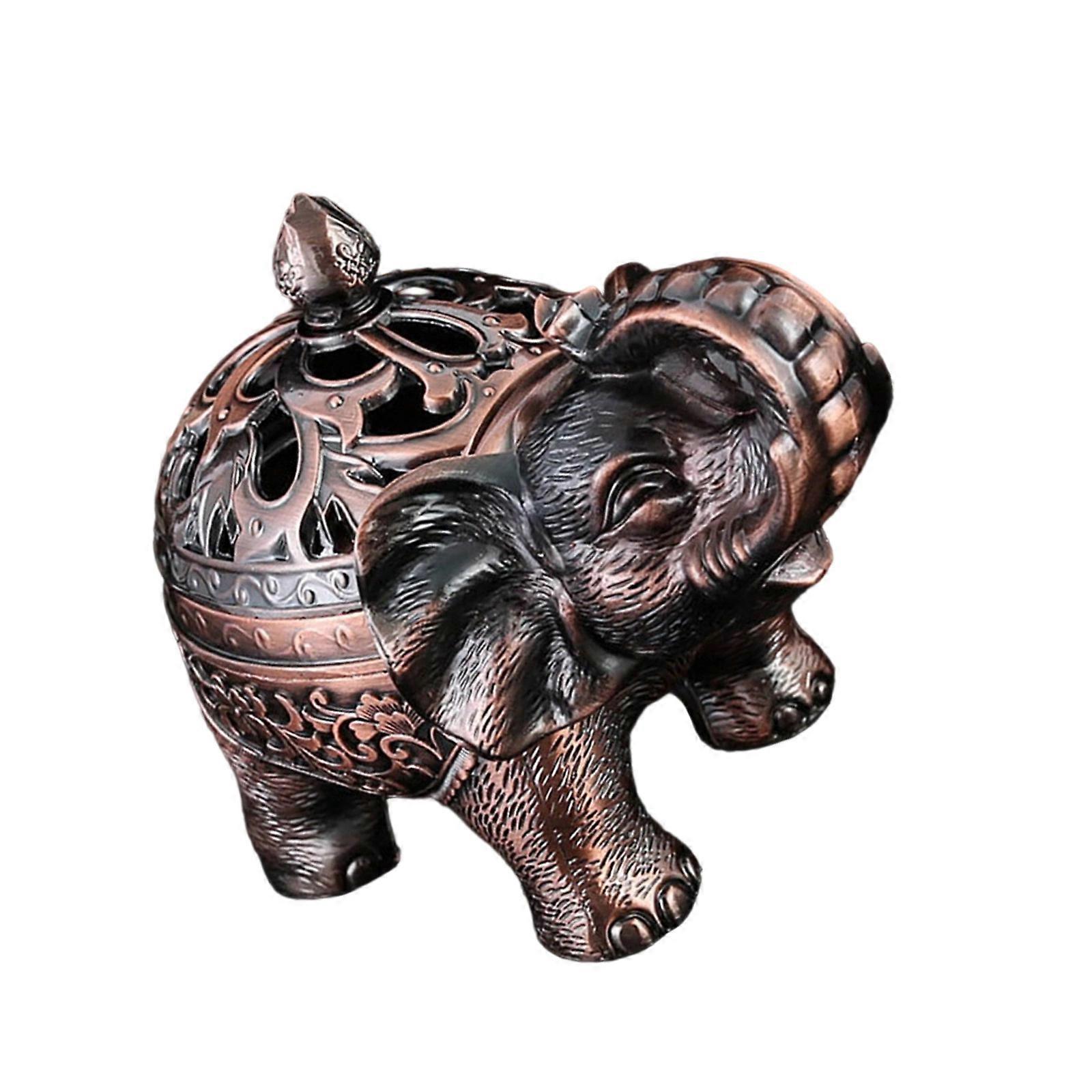 Elephant Statue Cones Coils Incenses Holder With Ashes Tray Feature European Styles Zinc Alloy Decors For Modern Space Red Ancient