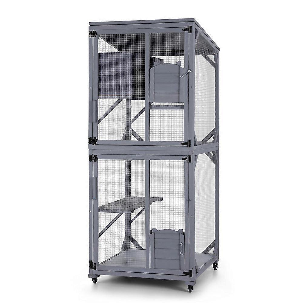 Free-Standing Multi-Tier Structure Spacious Design With Four Tiers For Climbing Playing And Resting Suitable For Indoor And Protected Outdoor Use Sturdy Jumping Platforms For Active Pets Two Lockable Doors For Secure And Private Space Top Rest House For Peaceful Naps Four Wheels For Easy Movement Across Floors High-Quality Fir Wood And Metal Construction Asphalt Felt Roof For Water Resistance Bottom Pad Included For Extra Comfort Convenient Entry And Exit Design Easy To Assemble And Clean Ideal For Cats Rabbits And Puppies Specifications: