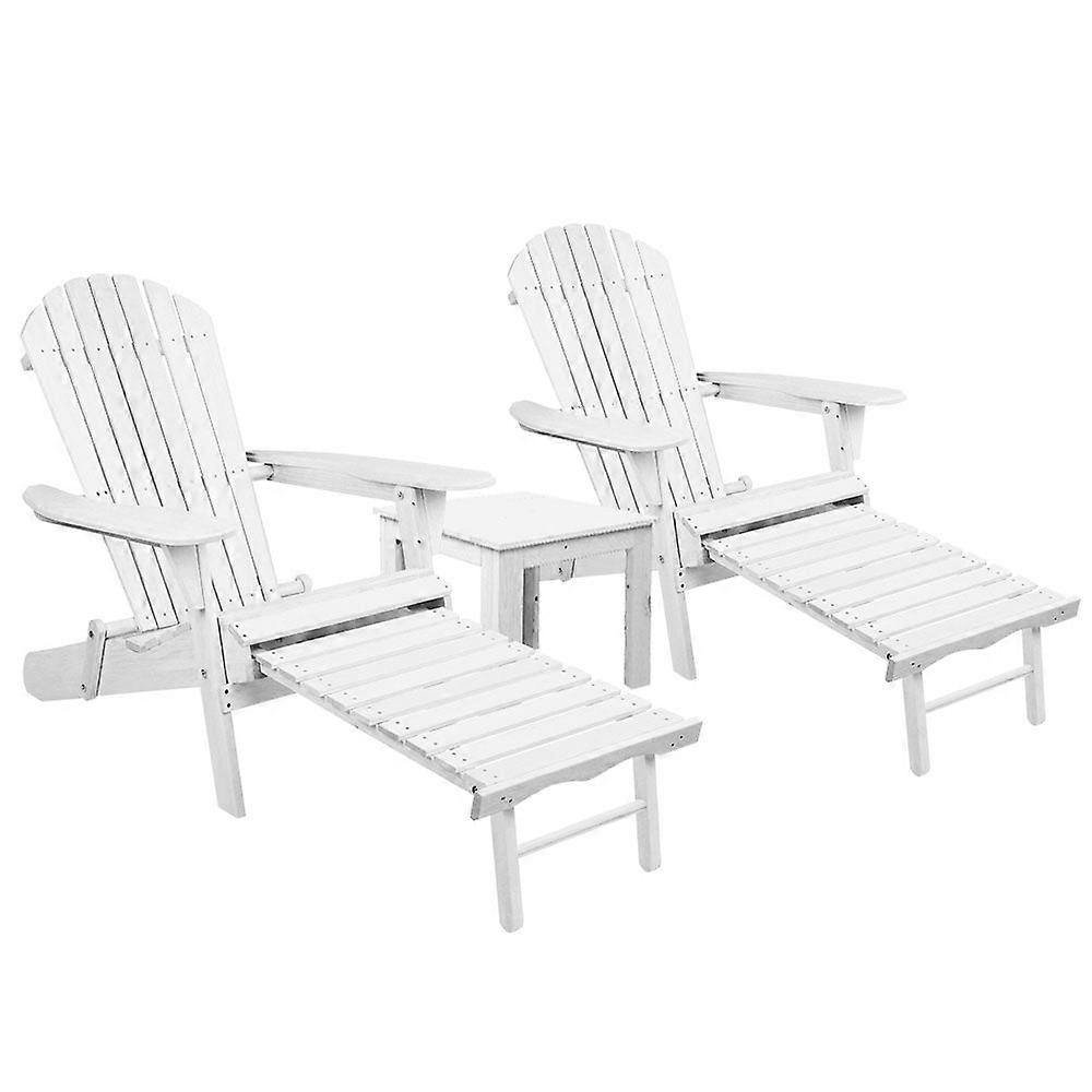 Gardeon 3Pc Adirondack Outdoor Table And Chairs Wooden Sun Lounge Beach Patio White Outdoor Dining Sets