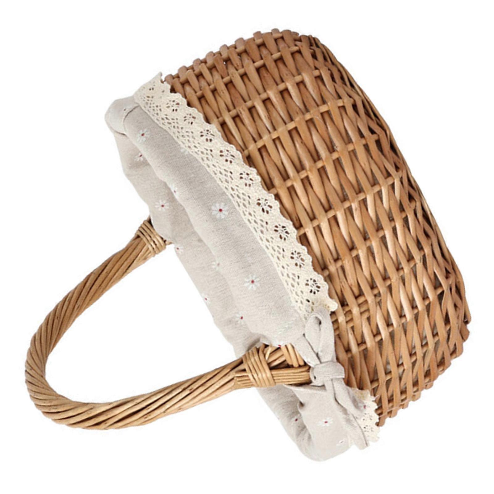 Wicker Storage Basket Outdoor Picnic Gift Packing Basket with Washable Lining For Eggs, Fruits, Or Flowers Easy to Carry Multicolor