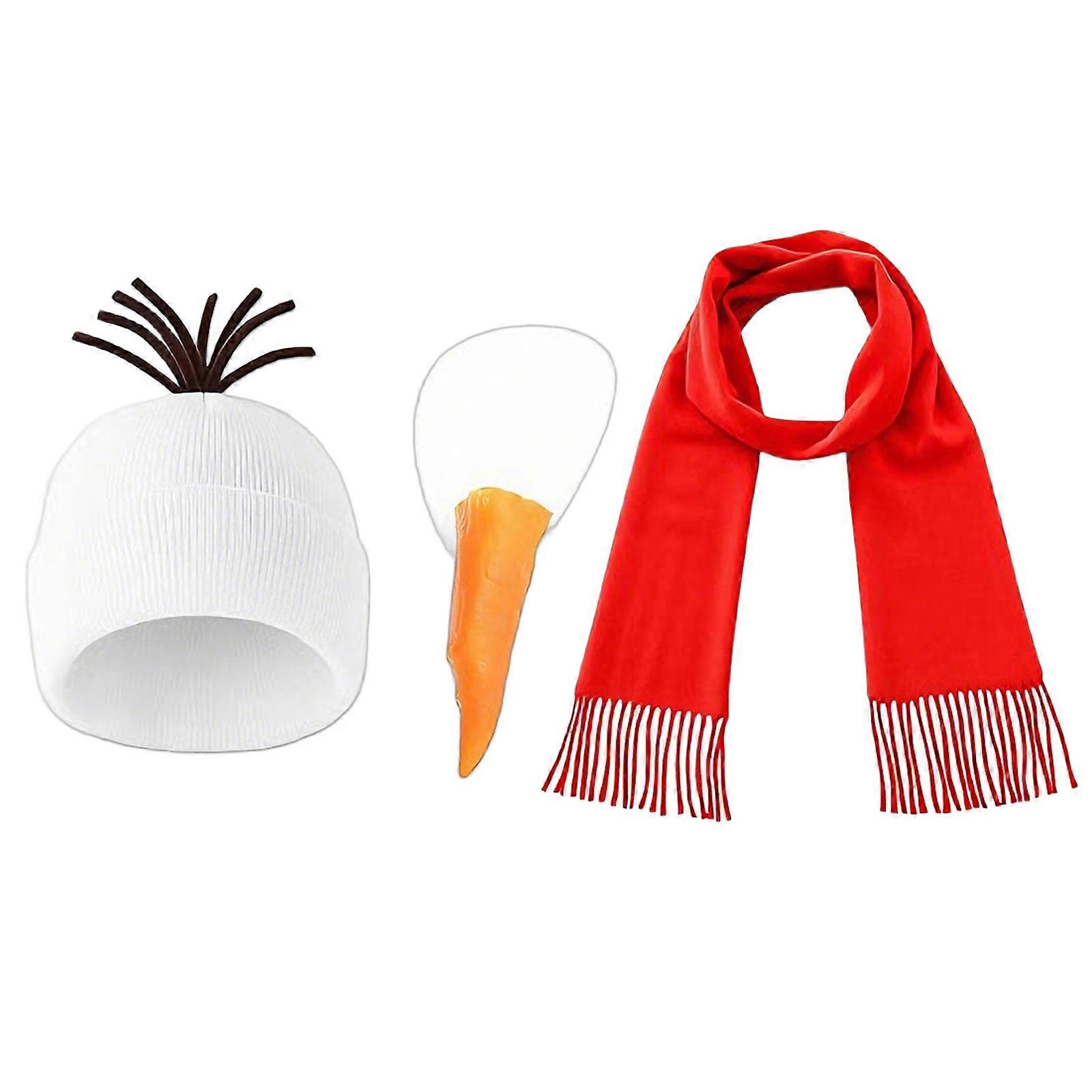 3pcs Snowman Costume Complete Kit Knitted Hat Red Scarf Carrot Nose Suitable for Children Adults Holiday Activities Multicolor
