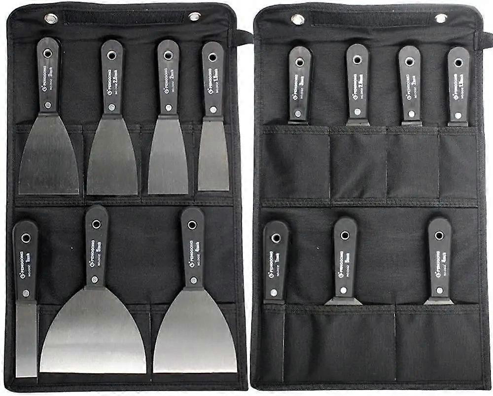 7PCS Carbon Steel Putty Knives Set Flex Drywall Knife Paint Scraper Kit 7 Sizes Soft Grip Handle Canvas Storage Bag Included