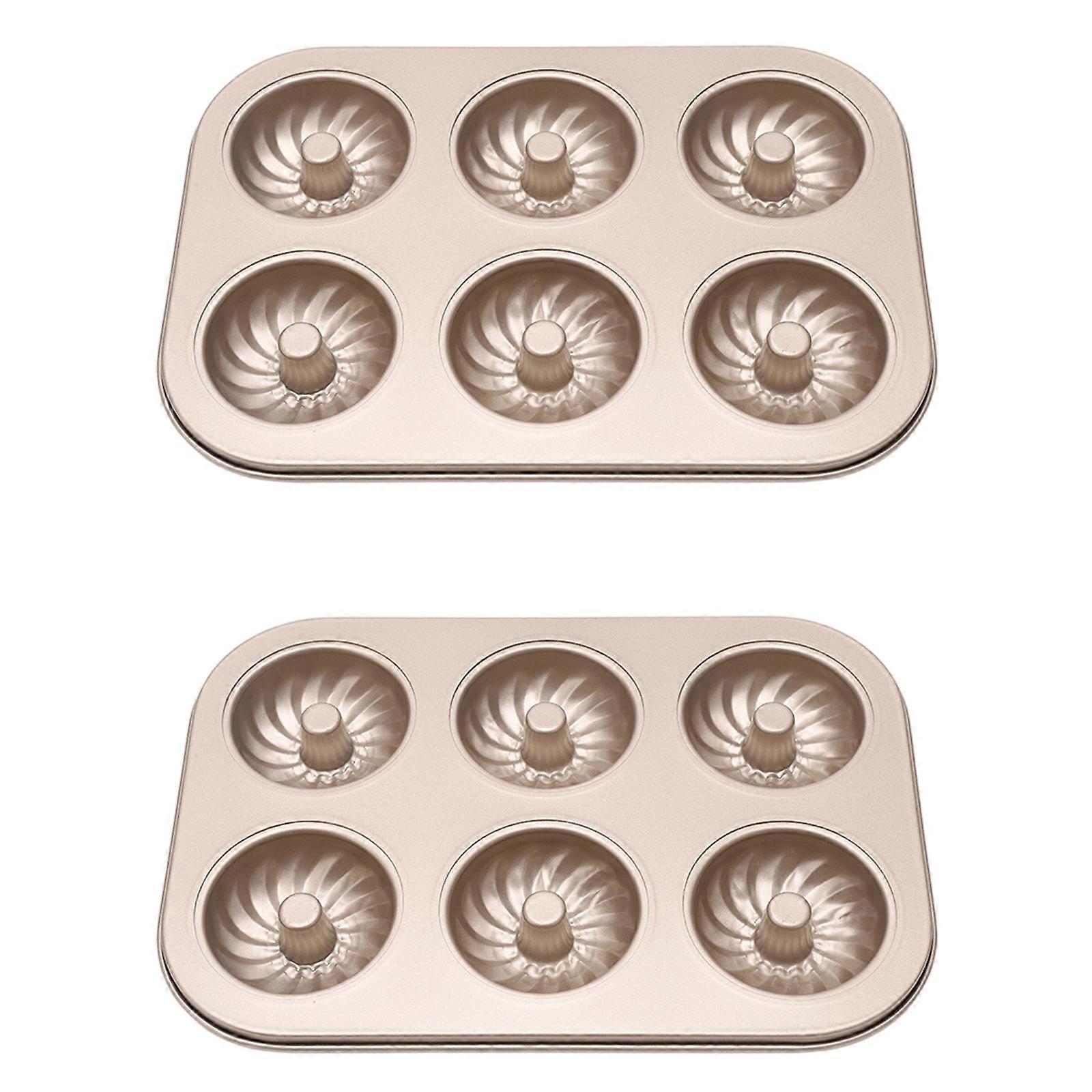 Set Of 2 Convenient Baking Molds With Even Heating Practical Stainless Steel 6 Cup Cake Pan for Kitchen Multicolor
