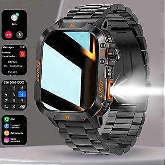 New men's outdoor sports smart watch 2.01 inch, wireless call, LED flashlight, mobile phone synchronization information, IP68 waterproof, 10