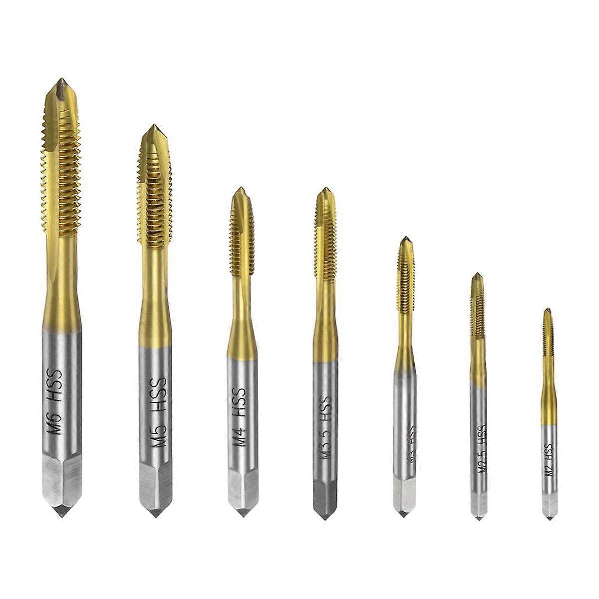 7pcs Spiral Point Tap Set M2 M2.5 M3 M3.5 M5 M6 Metric Thread Screw Taps, Titanium Coated High Speed
