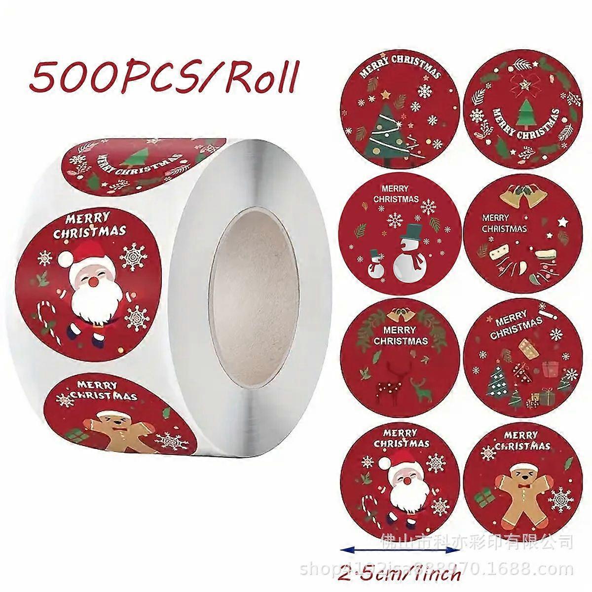 Christmas Holiday Happy Round Stickers 2.5cm Copperplate Adhesive Labels for Gift Wrapping Sealing Decoration