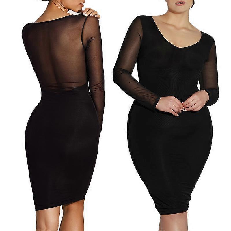 FeelinGirl Shapewear Long Sleeve Bodycon Sheer Mesh Seamless Breathable Casual Fabric Dresses tts