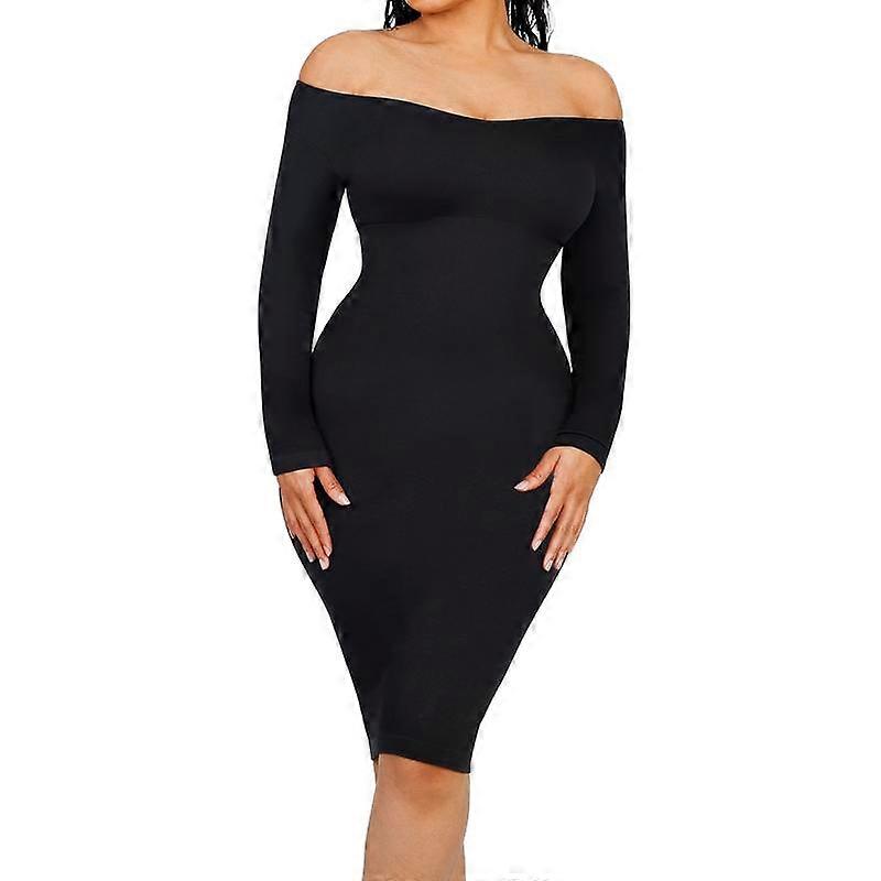 FeelinGirl Bodycon Dress for Women Long Sleeve V Neck/Off Shoulder Shapewear Dress Knit Midi Black Dress Elegant Fabric Midi Dress Soft W