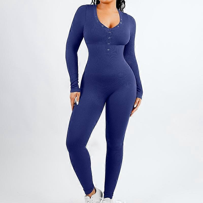 FeelinGirl Women's Long Sleeve V-neck Bodycon Jumpsuit One-piece Seamless Ribbed Romper Long Skinny Sportswear