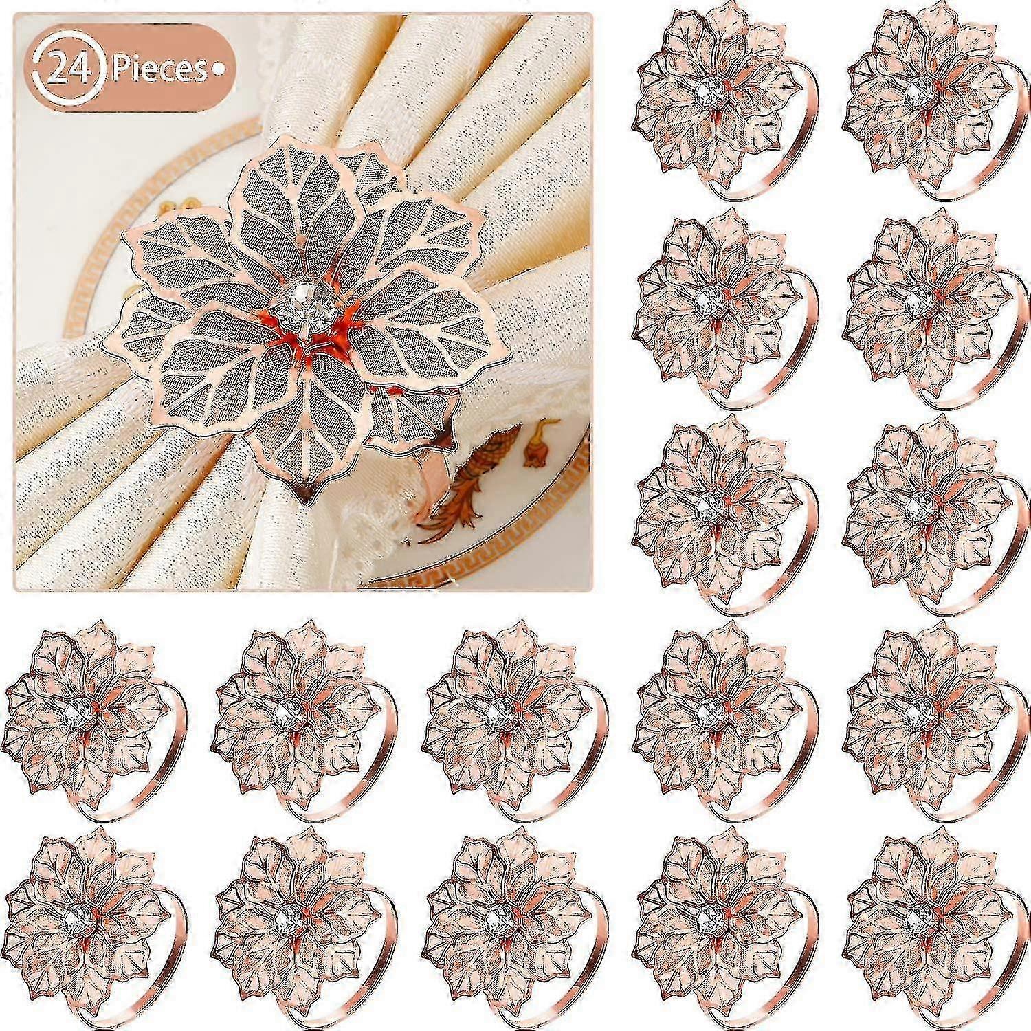24 napkin rings, alloy openwork flower design, napkin holder decoration, exquisite home floral ornaments.