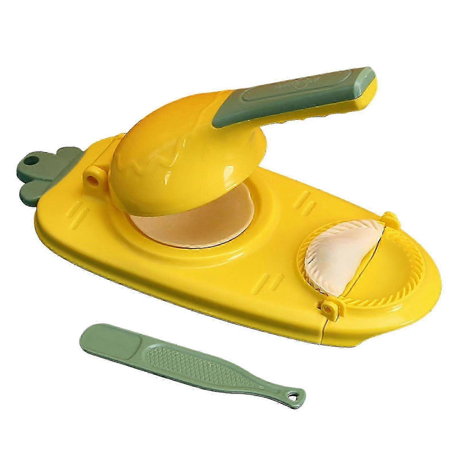 2-in-1 dumpling mold, manual pressing, food-grade PP material, includes spoon, household kitchen accessory, Lightning Yellow.