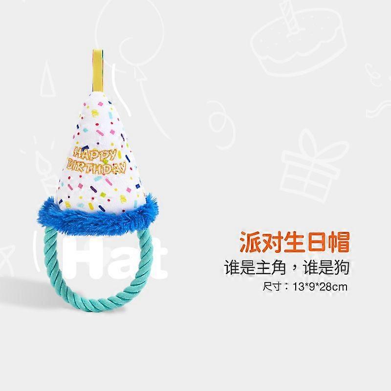 Birthday Party Hat Dog Toys - Party-Themed Plush Squeaky Pet Toys for Puppies & Dogs, Cute Birthday Celebration Chew Toys, Interactive Play Toys for S