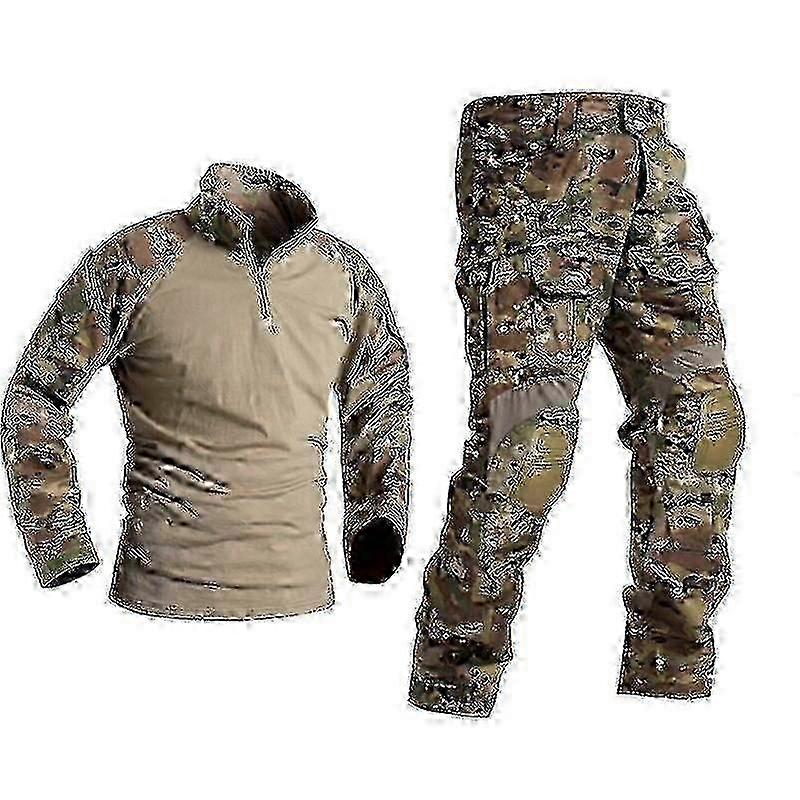 Ensemble uniforme camouflage composé d'une chemise et d'un pantalon tactiques pour les activités de plein air.