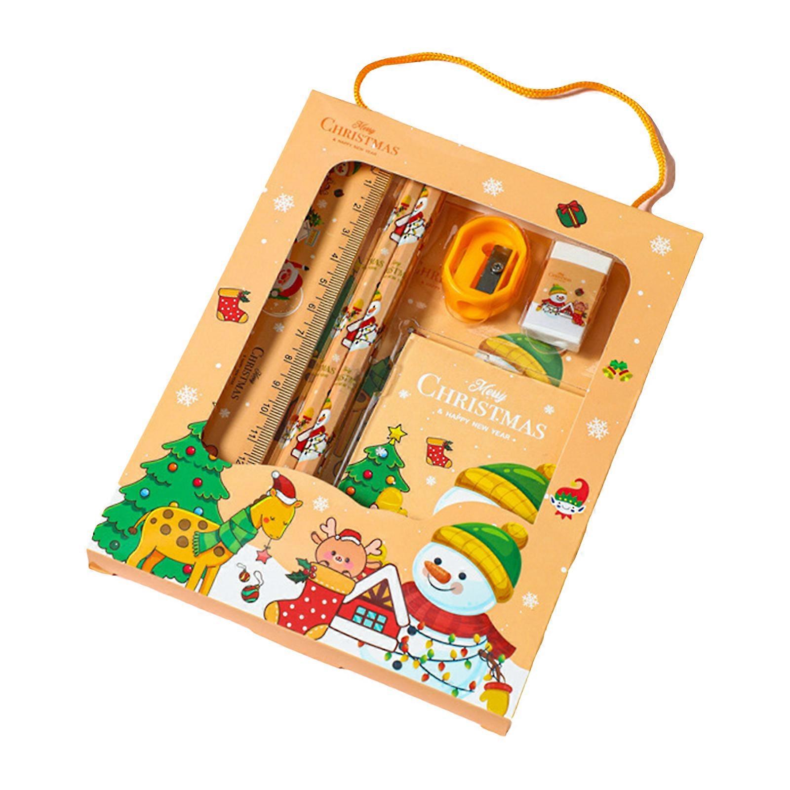 Christmas Stationery Set for Kid and Student including Christmas Pencil, Eraser, Ruler, Pencil Sharpener, Mini Notes Pad Yellow
