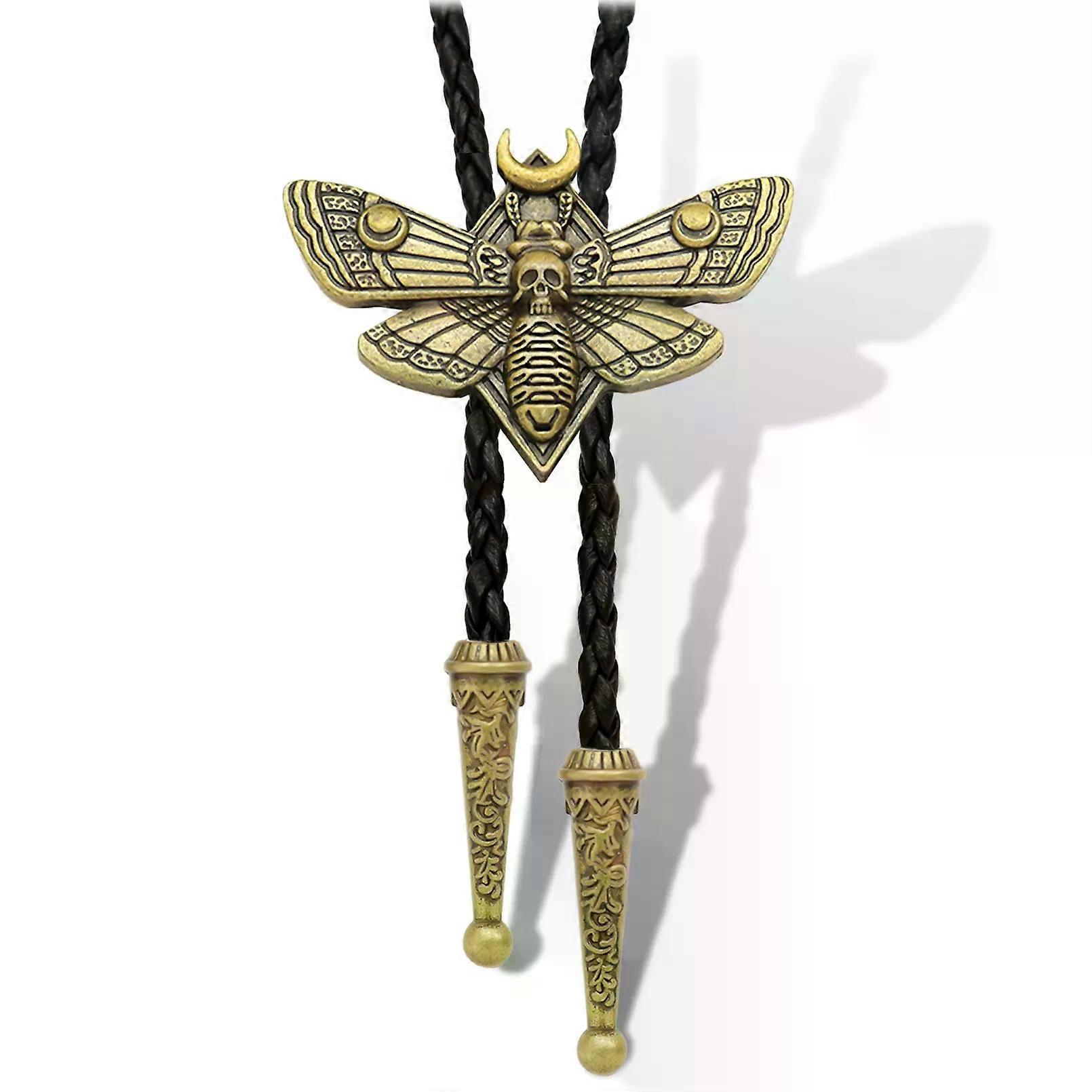 Bolo Tie for Men Skull Head Moth Bolo Tie Necktie Insect Moon Moth Pendant Leather Necklace Western Cowboy Accessories Woman