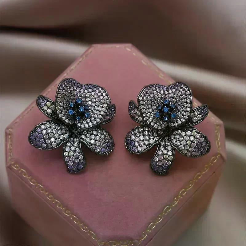 France new design fashion jewelry tricolor plated luxury zircon flower earrings elegant women s wedding party accessories
