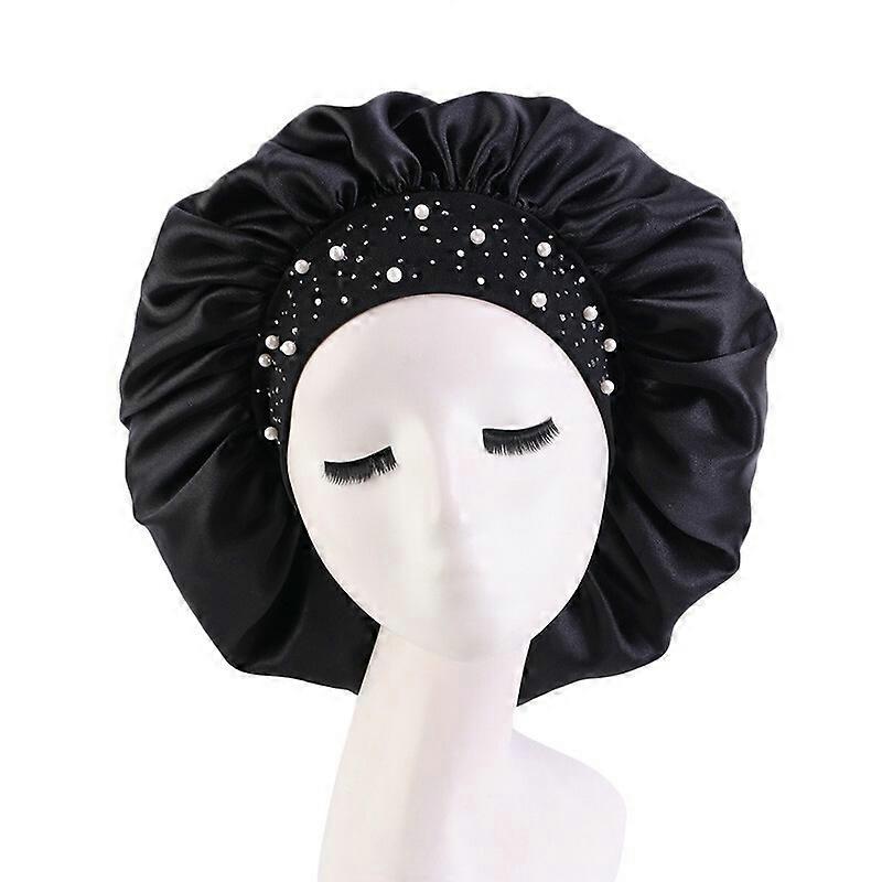 Bead flower Satin Night Sleep Cap Hair Bonnet Hat Head Cover Wide Band Elastic