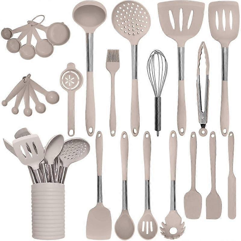 Kitchen Utensils Set, Dishwasher Safe Stainless Steel, Utensils For Cooking, Spatula Set Heat Resistant (26 Pcs - Stone)