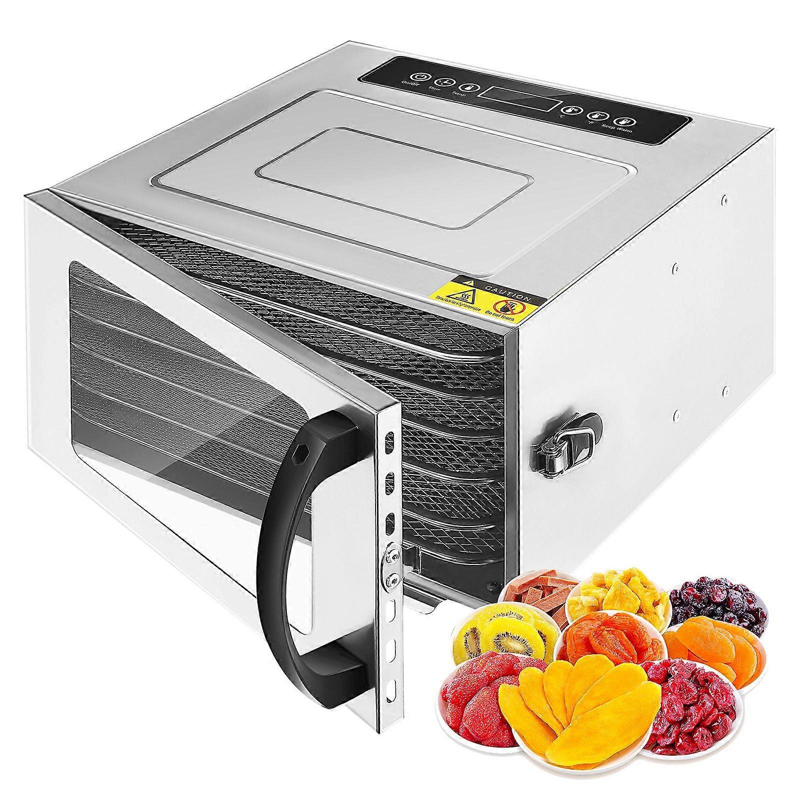 Food Dehydrator Machine: 6 Stainless Steel Trays Jerky Dehydrator for Meat - Mushroom Fruits Dryer for Veggies Yogurt & Dog Treats, Silver, EU Plug