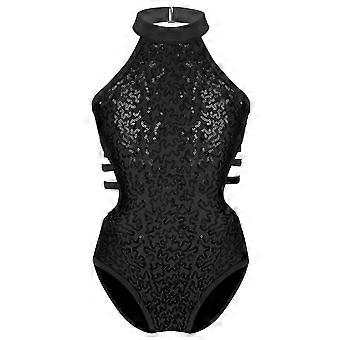Kid Girls Cutout Back Leotards Sparkly Sequins Dance Unitards Ballet Bodysuit