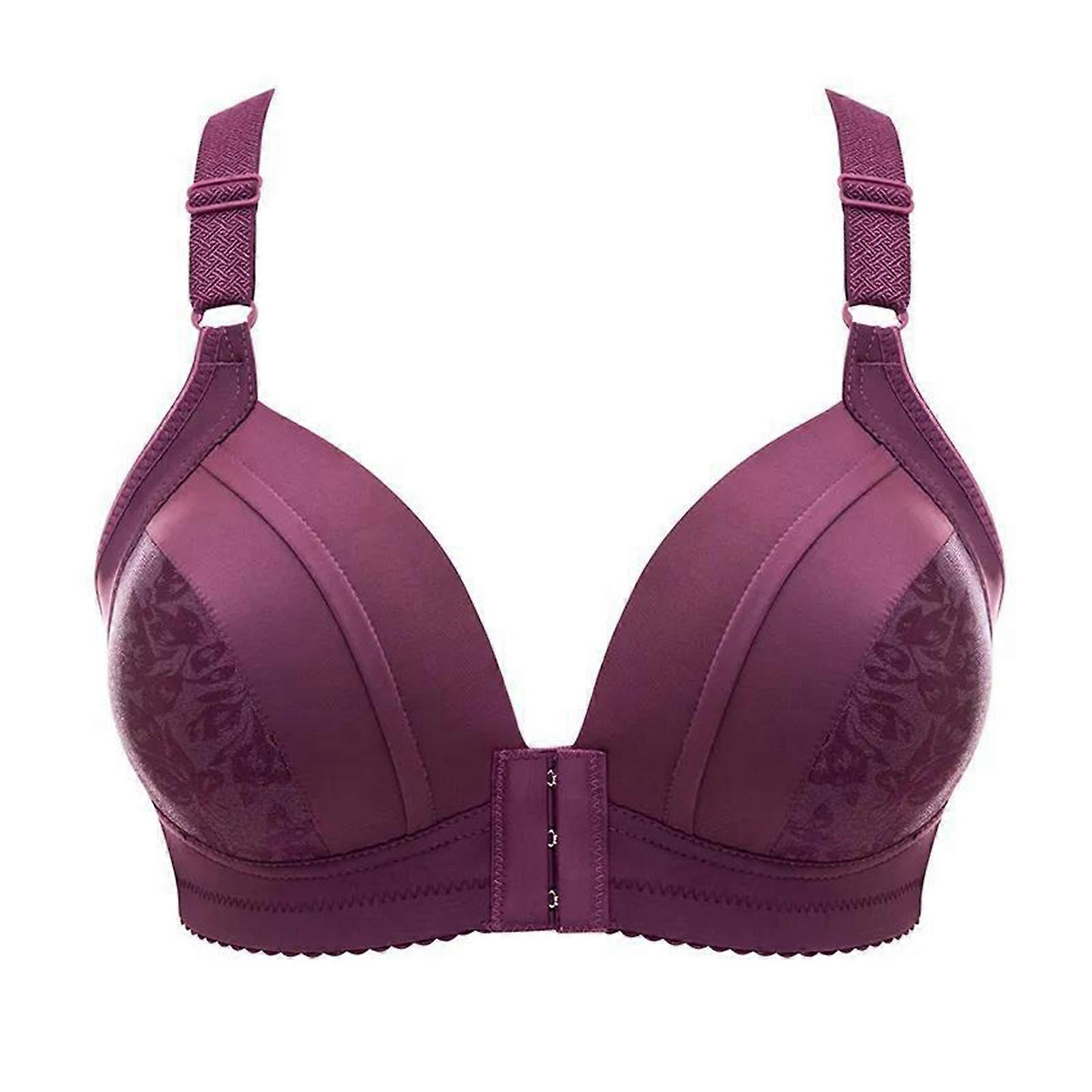 Front Closure Full Coverage Underwear Bras No Underwire Brassiere Push Up Florals Bra for Women Purple 36 80