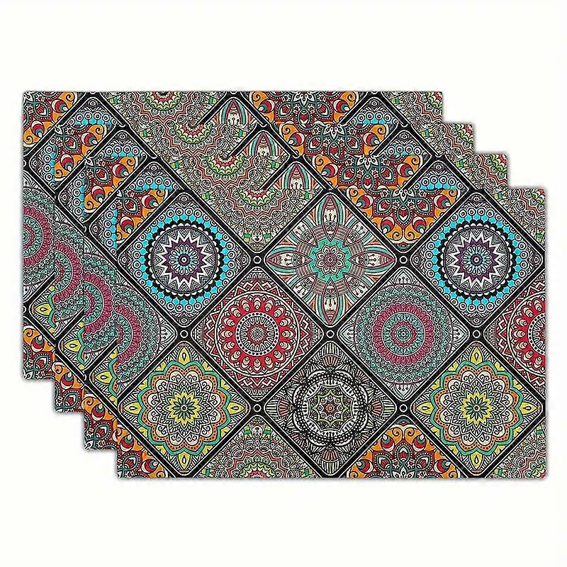 / : ILVISEST Color : Colorful Material : Polyester Linen Size : 12x18Inch/30x45cm Occasion : Kitchen, Indoor Outdoor, Home, Vintage Package : Set of 4 Table Placemats/ Opp Bag / High Quality Material: Made of 100/ spun polyester linen which is soft, durable and wrinkle-proof. Perfect to protect your dining table from food stains and scratches. / Bright Dining Table Decor: Add flair to your dining table with the colorful placemat. Perfect for family daily use, holidays, receptions, parties and more. Sure to impress your guests and create a WOW feeling. / Durable and Stylish: Hemmed and reinforced edges can help to keep placemats from Fraying. Vibrant patterns increases charm in placemats and blow a fresh breeze into your dinning room, perfect for indoor and outdoor use. / Easy to Clean: Machine wash and lay the placemat flat to dry. Stays the same and as new after every wash. / Designed with You in Mind: Our place mats are designed by professionals. Vibrant color and unique pattern print offers you creative and unique idea to decorate home.
