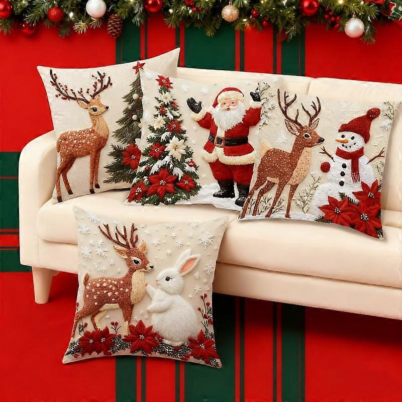 4 Christmas Throw Pillows (Without Pillow Inserts), Reindeer and Rabbit Decorative Sofa Atmosphere Decorations, Christmas Decorations, Home