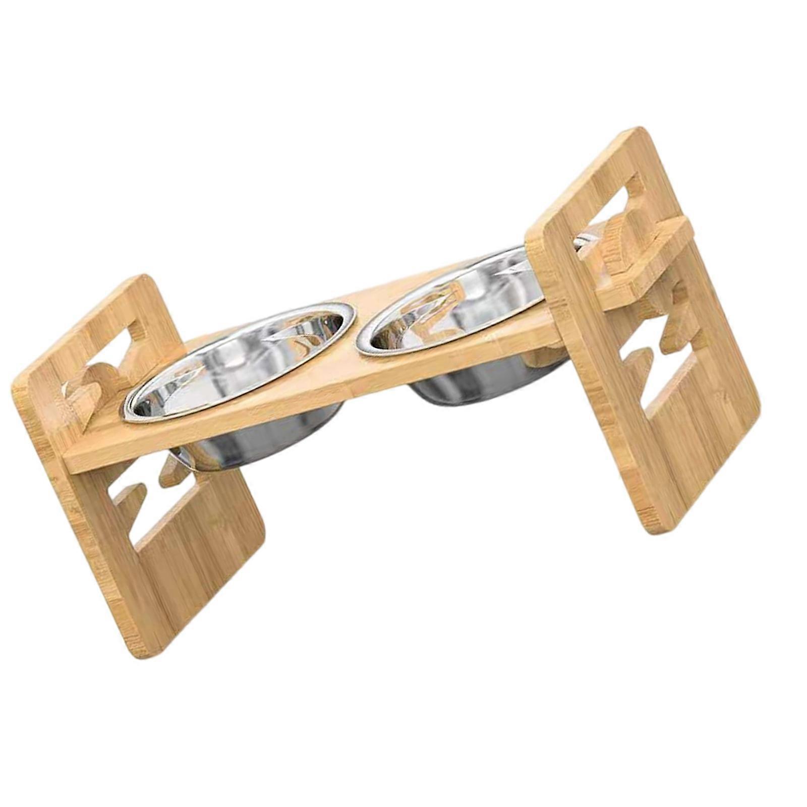 Ergonomic Pet Bowl Stand Height Regulable Stainless Steel Dish Wooden Frame for Small Media Dogs Healths Eating Multicolor